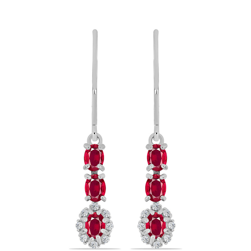 Stříbrné Náušnice s Madagaskarským Rubínem a Bílým Topazem