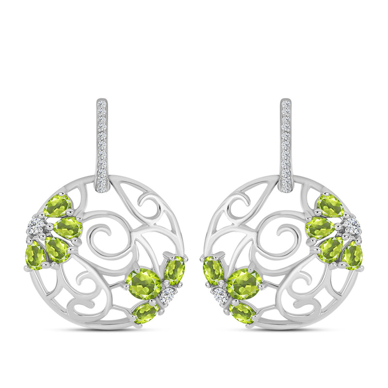 Stříbrné Náušnice s Čchang-pajským Peridotem a Bílým Topazem