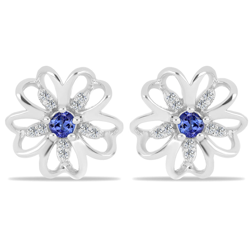 Stříbrné Náušnice s Tanzanitem a Bílým Zirkonem