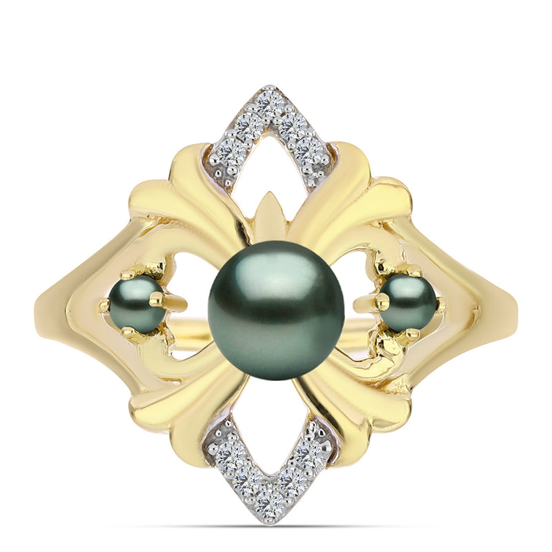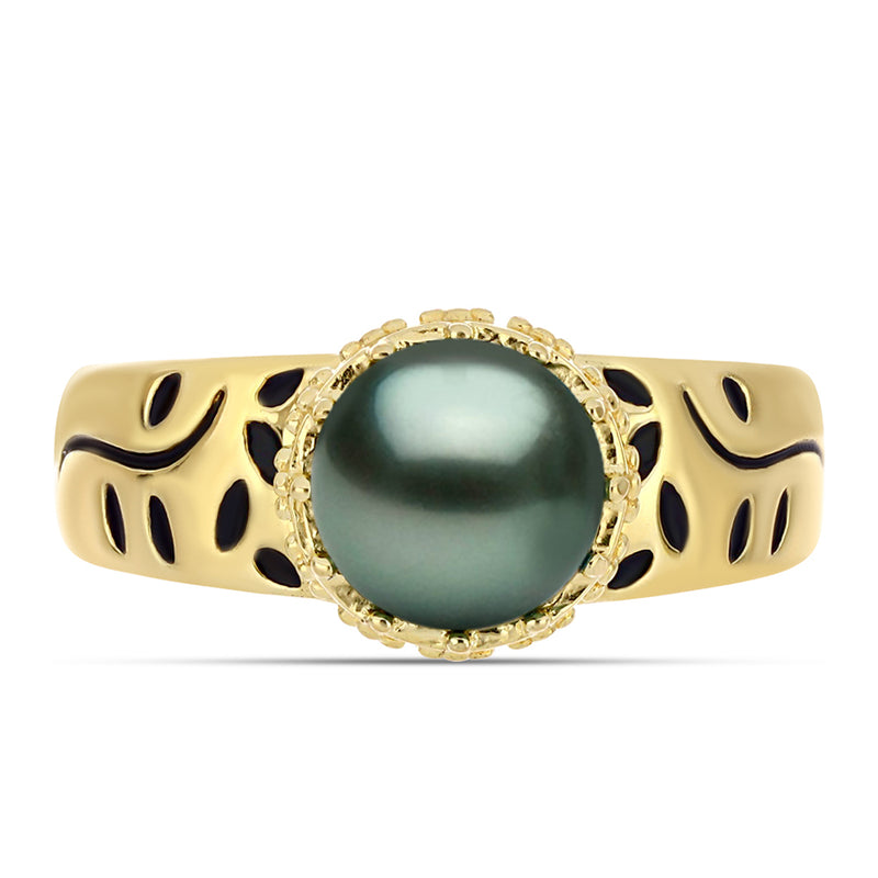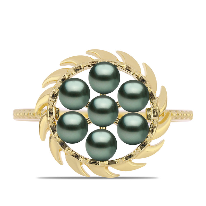 Pozlacený Stříbrný Prsten se Sladkovodní perlou v podobě Tahitské zelené iluze