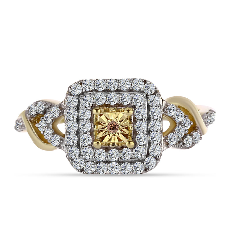 Pozlacený Stříbrný Prsten s Cognac Diamantem