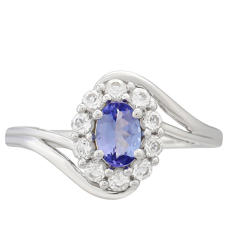 Stříbrný Prsten s AAA Tanzanitem a Bílým Topazem