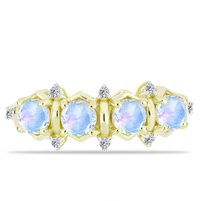 Pozlacený Stříbrný Prsten s Duhovým Měsíčním Kamenem