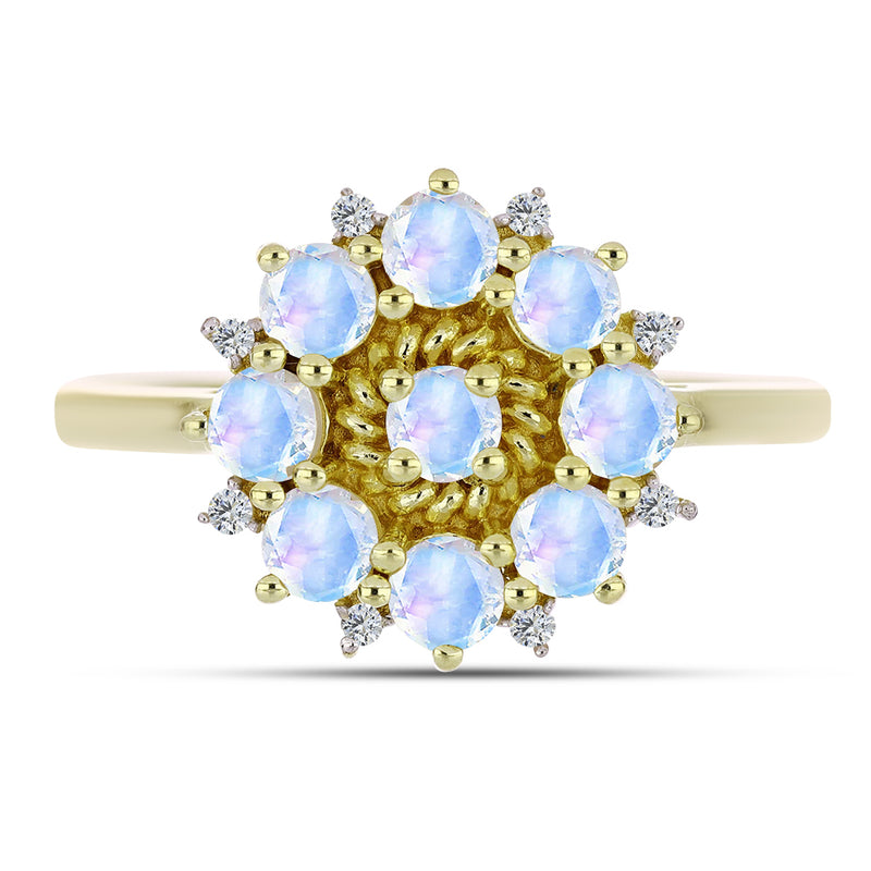 Pozlacený Stříbrný Prsten s Duhovým Měsíčním Kamenem a Bílým Topazem