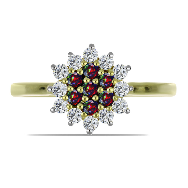 Pozlacený Stříbrný Prsten s Červeným Houbovým Korálem a Bílým Topazem