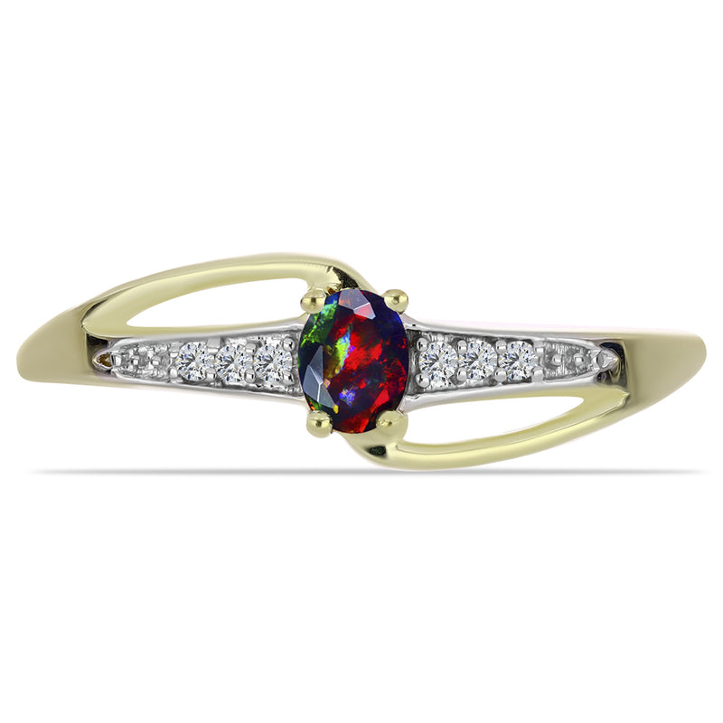 Pozlacený Stříbrný Prsten s Půlnočně Černým Etiopským Opálem z Lega Dembi a Bílým Topazem