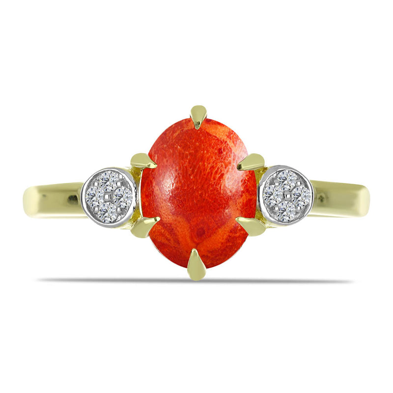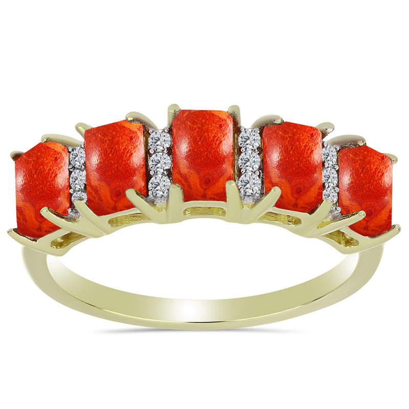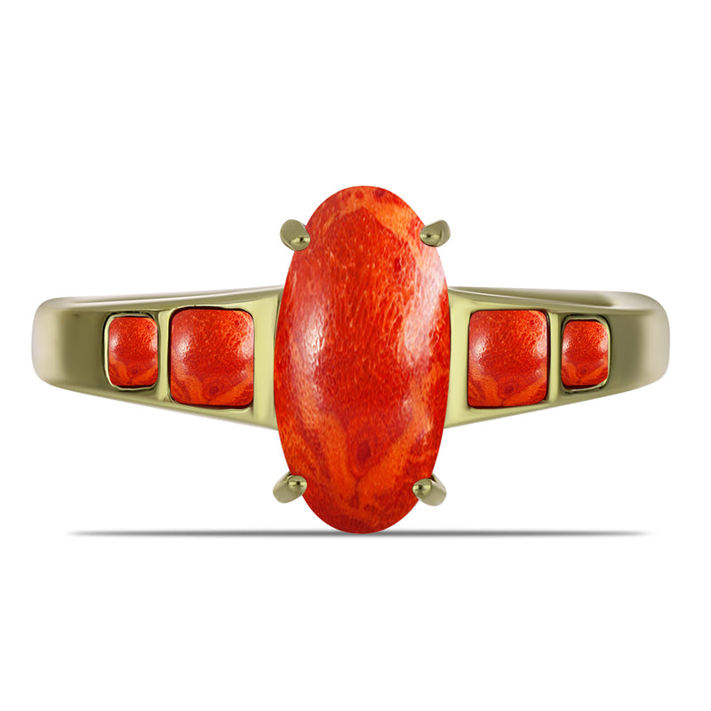 Pozlacený Stříbrný Prsten s Červeným Houbovým Korálem