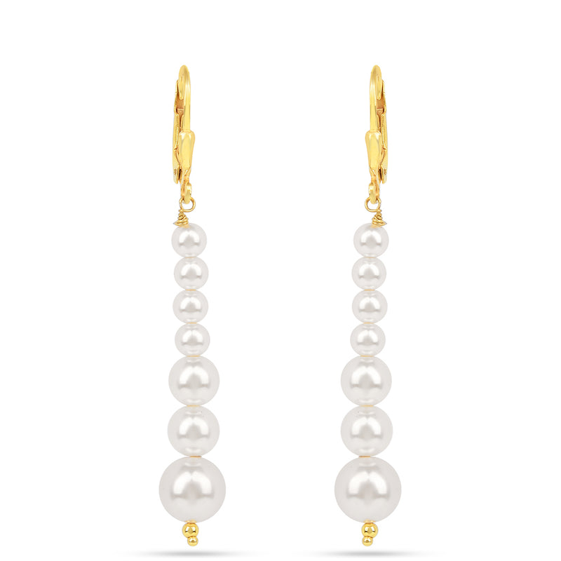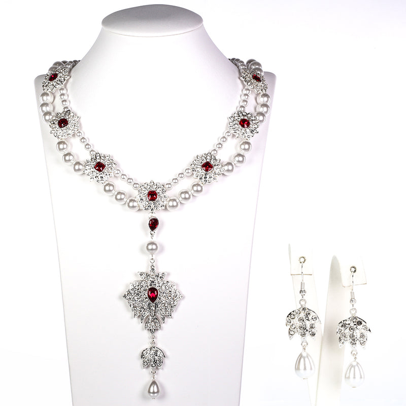 Pozlacená Slitinová Sada s Skleněná Perla a Bílým Emporia® Křišťálem ( Náhrdelník+Náušnice )