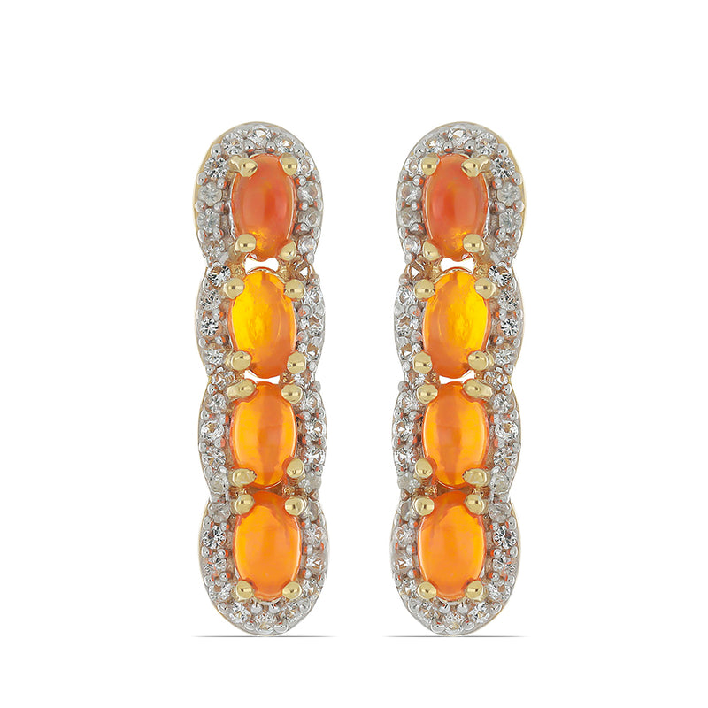 Pozlacené Stříbrné Náušnice s Oranžovým Opálem z Lega Dembi a Bílým Topazem