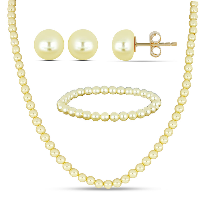 Nugetová Sada se Zlatou Sladkovodní Perlou ( Náhrdelník+Náušnice+Náramek )
