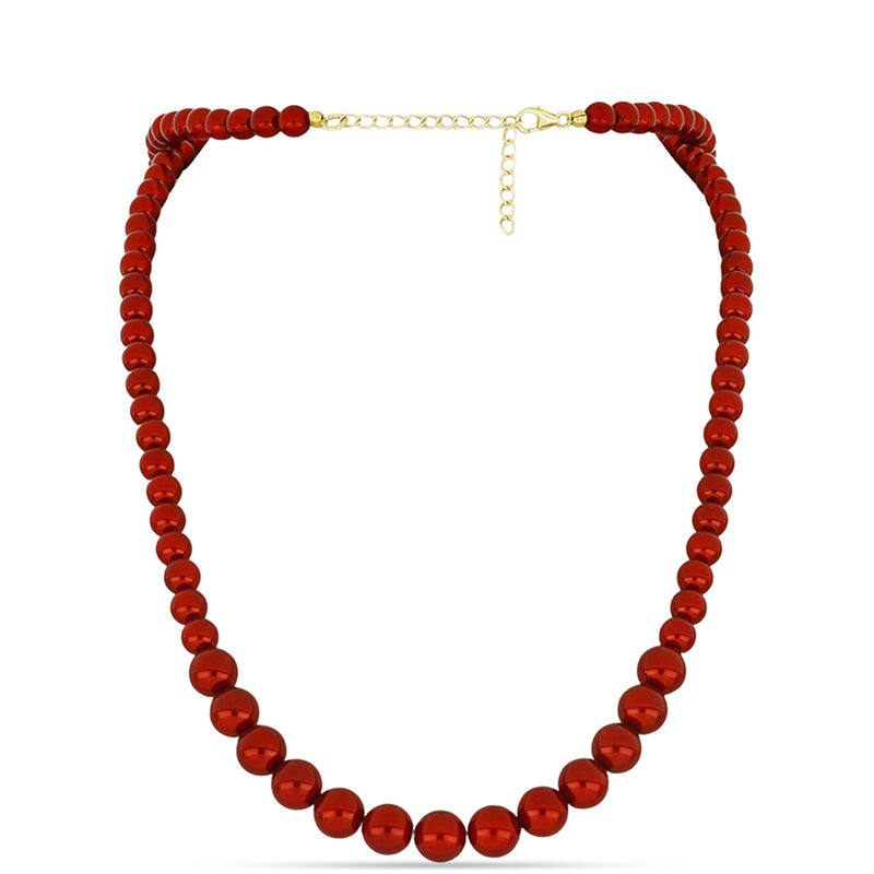 Pozlacený Stříbrný Náhrdelník s Červená sladkovodní Perlou