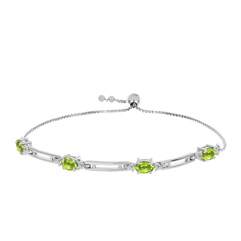 Stříbrný Náramek s Čchang-pajským Peridotem a Bílým Topazem