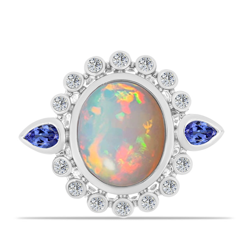 Stříbrný Prsten s Tanzanitem a Etiopským Opálem z Lega Dembi
