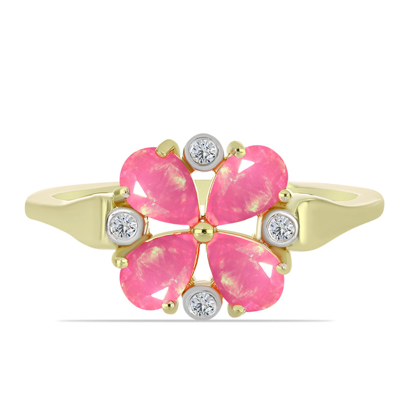 Pozlacený Stříbrný Prsten s Růžovým Etiopským Opálem z Lega Dembi a Bílým Topazem