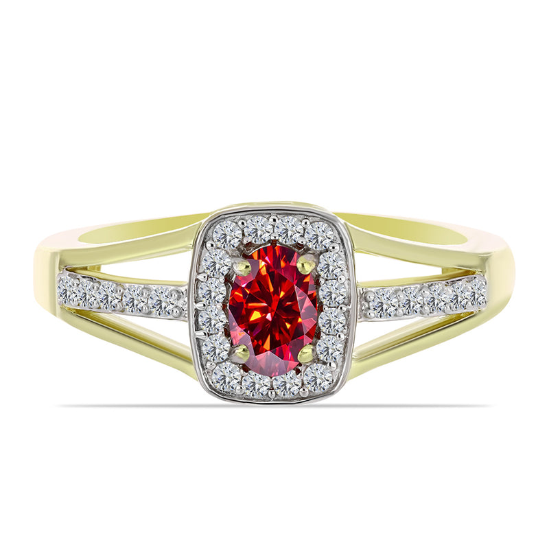 Pozlacený Stříbrný Prsten s Majestátním červeným moissanitem a Bílým Topazem