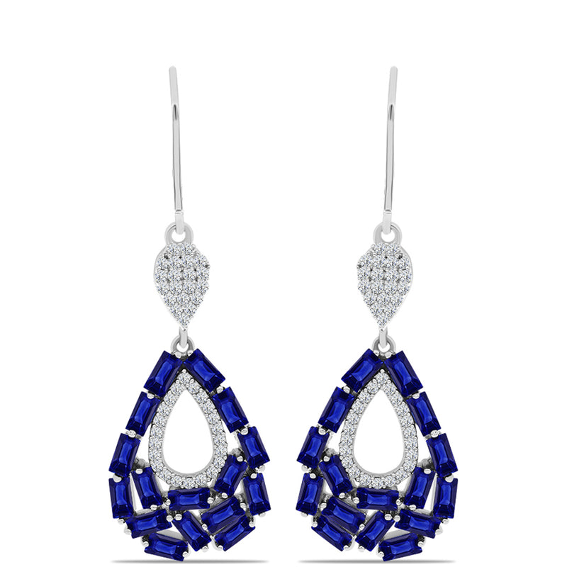 Stříbrné Náušnice s Australským Modrým Safírem a Bílým Topazem