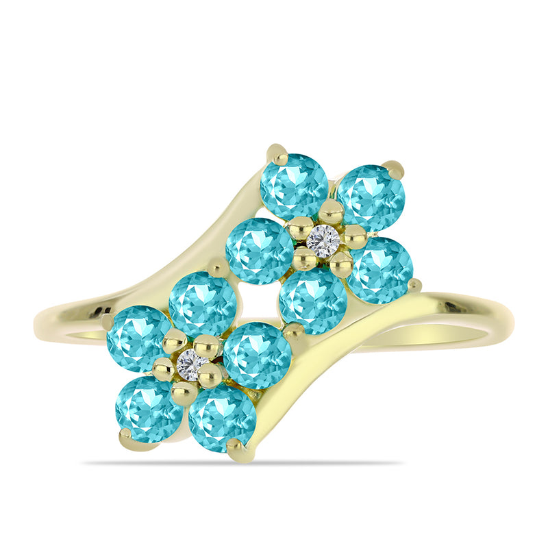 Pozlacený Stříbrný Prsten s Paraiba Křemenem a Bílým Topazem