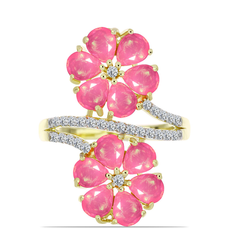 Pozlacený Stříbrný Prsten s Růžovým Etiopským Opálem z Lega Dembi a Bílým Topazem