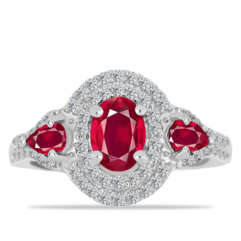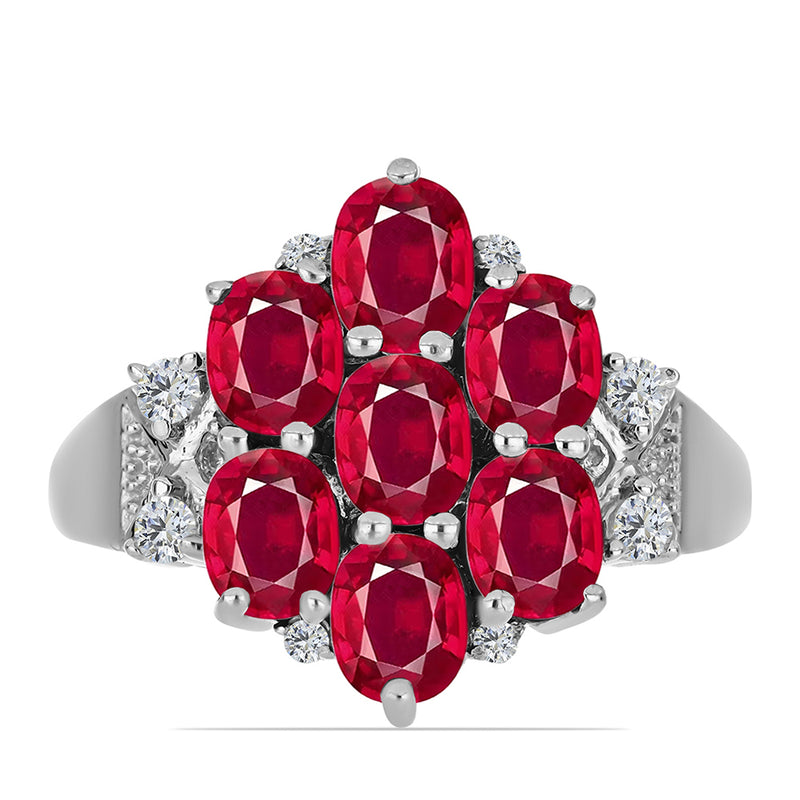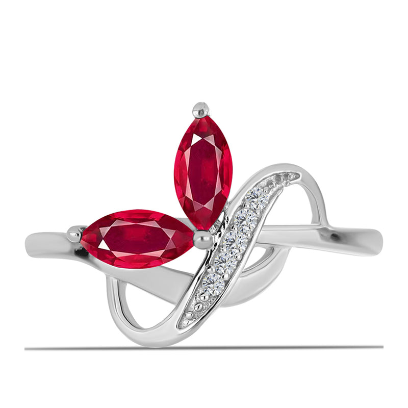 Stříbrný Prsten s Madagaskarským Rubínem a Bílým Topazem
