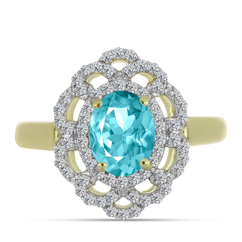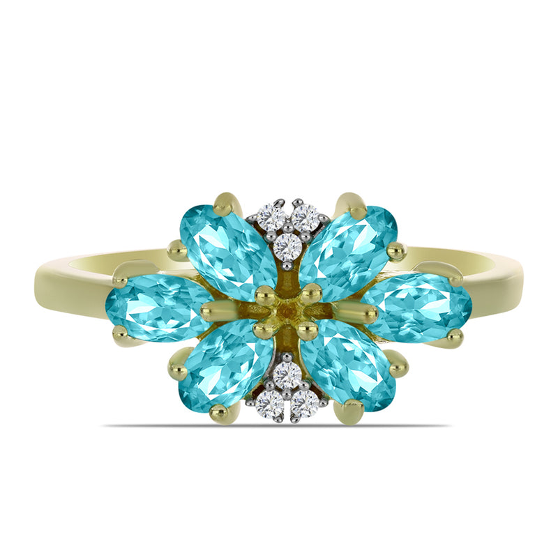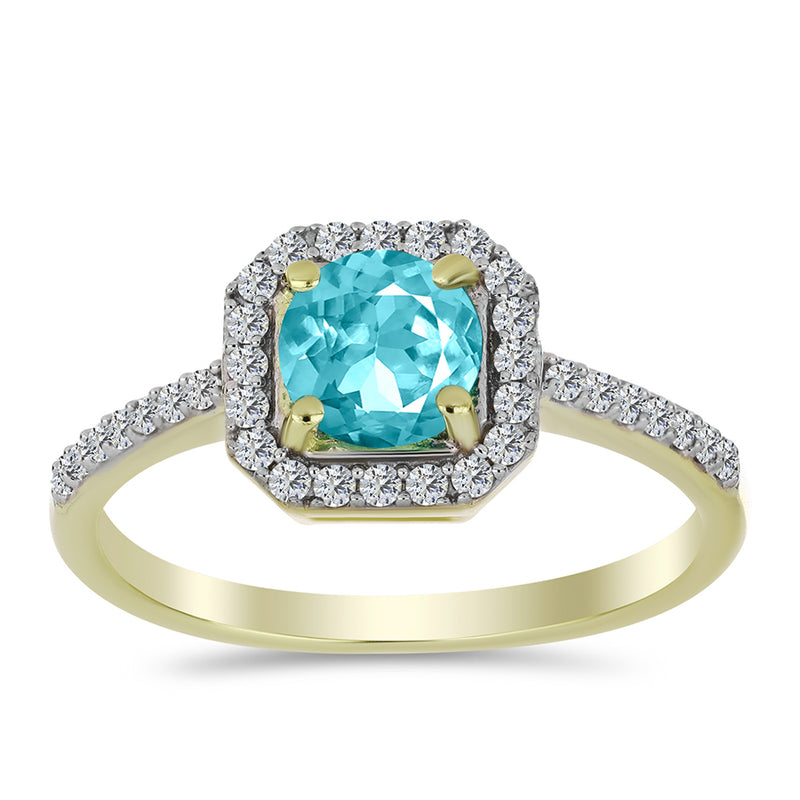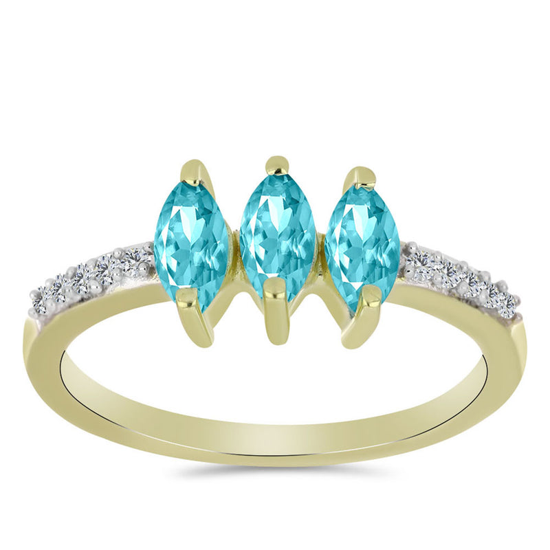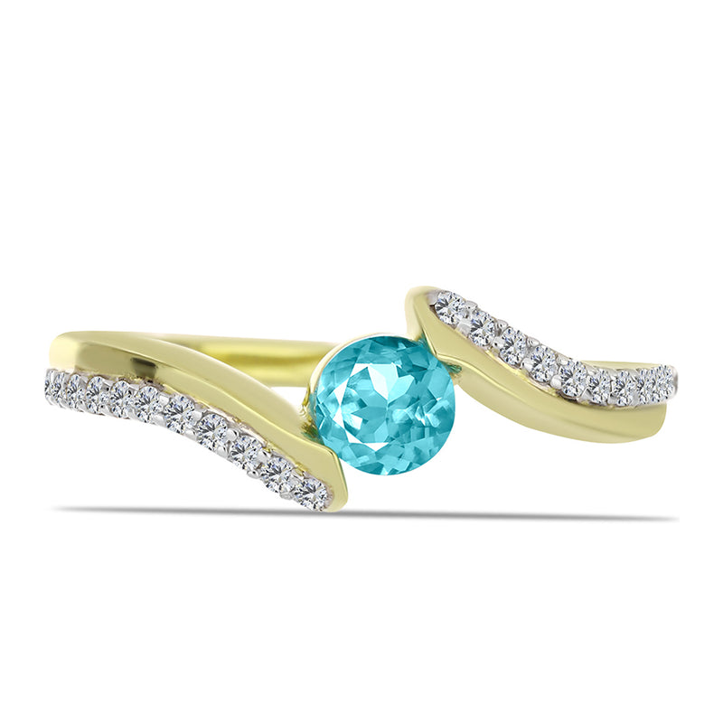 Pozlacený Stříbrný Prsten s Paraiba Křemenem a Bílým Zirkonem