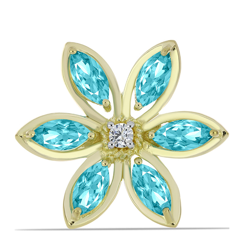 Pozlacený Stříbrný Prsten s Modrým tančícím diamantem a Bílým Topazem