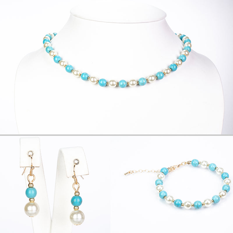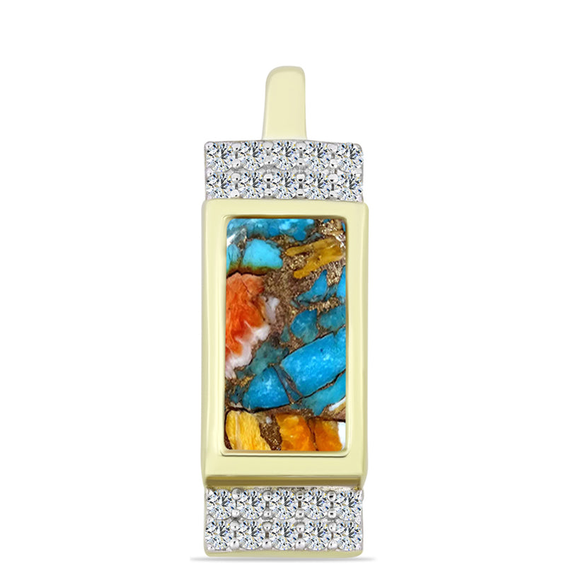 Pozlacený Stříbrný Přívěsek s Ústřicovým Tyrkysem a Bílým Topazem