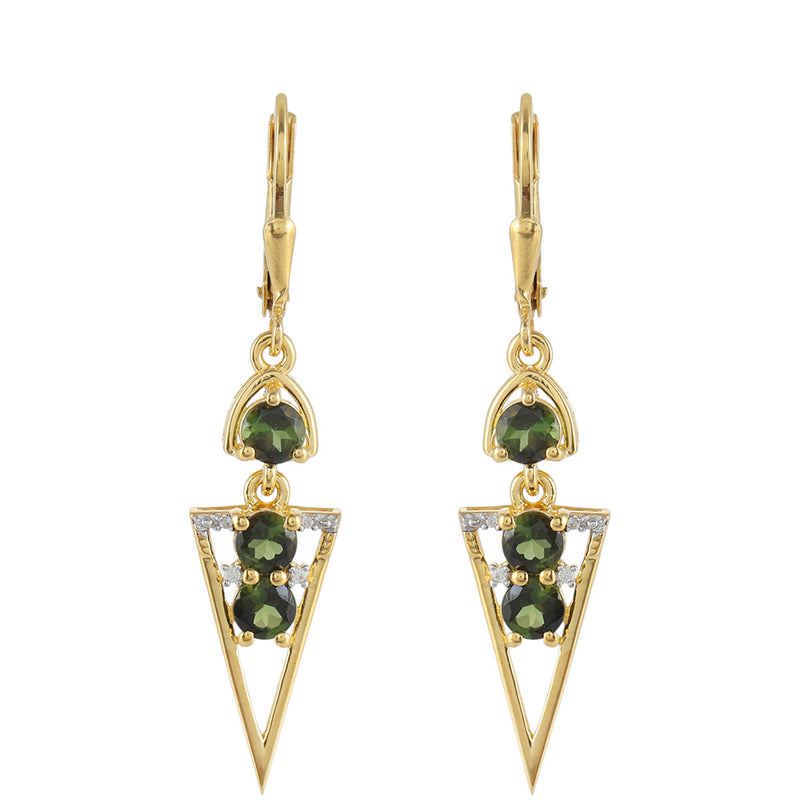 Pozlacené Stříbrné Náušnice se Zeleným Turmalínem a Přírodním Zirkonem