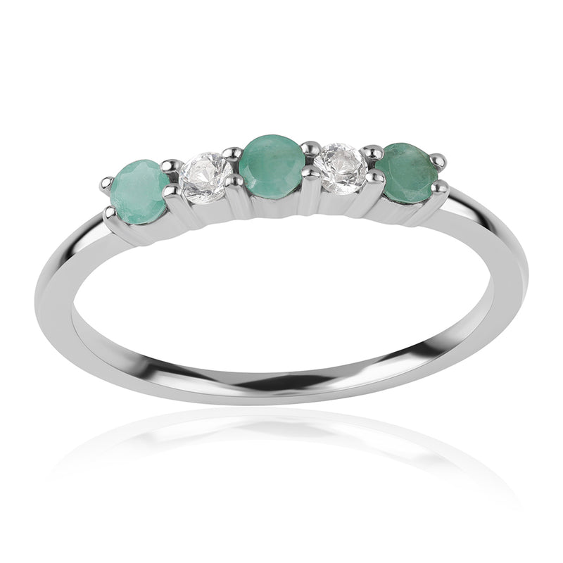 Stříbrný Prsten s Brazilským Smaragdem a Bílým Topazem