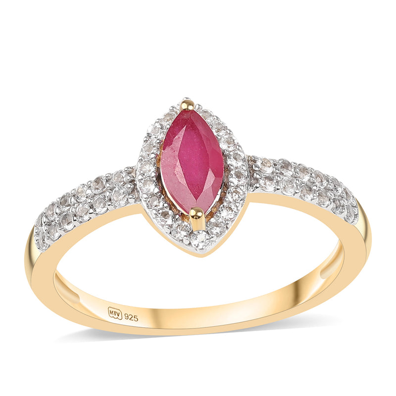Pozlacený Stříbrný Prsten s Mozambickým Rubínem a Bílým Topazem