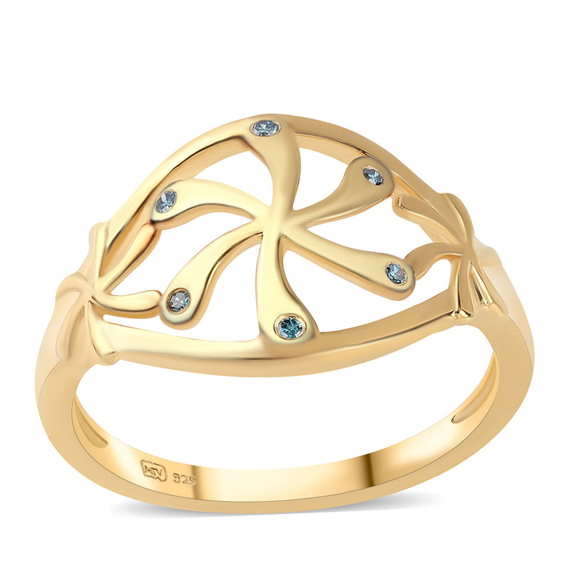 Pozlacený Stříbrný Prsten s Modrým tančícím diamantem