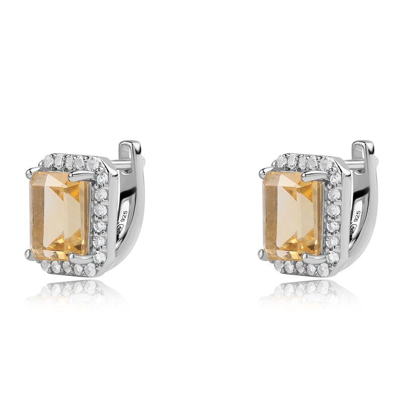 Stříbrné Náušnice s Brazilským Citrínem tř.AA a Bílým Topazem