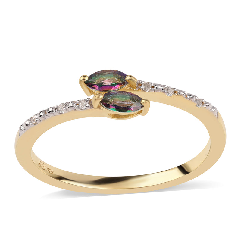 Pozlacený Stříbrný Prsten s Mystickým Topazem a Bílým Topazem