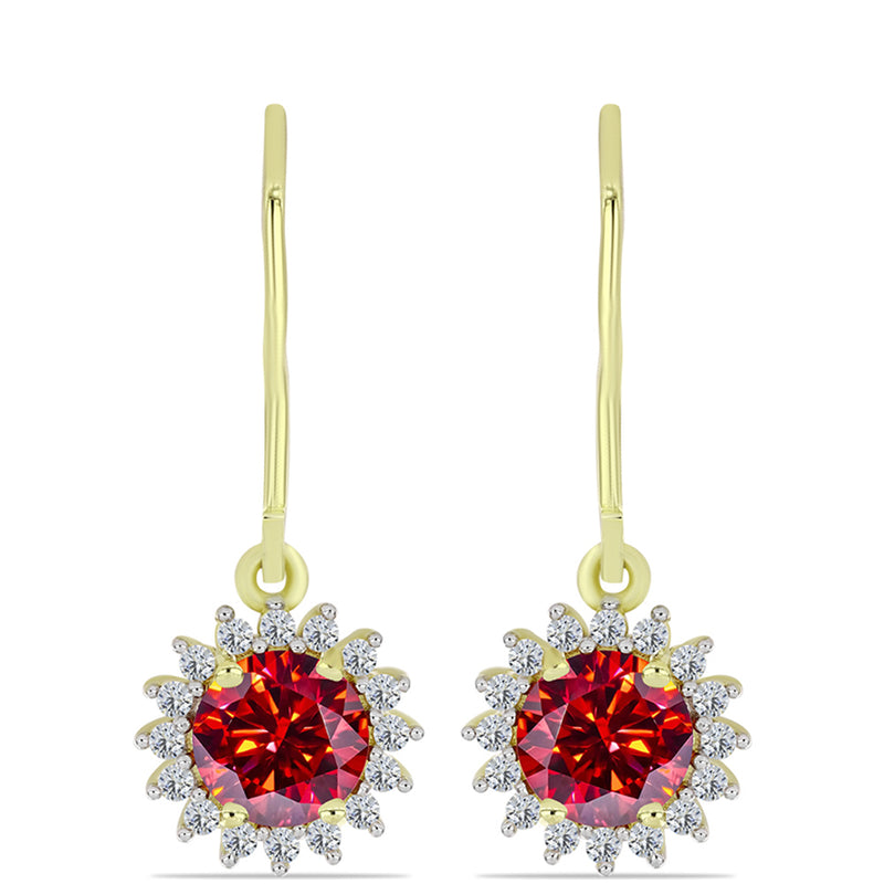 Pozlacené Stříbrné Náušnice s Majestátním červeným moissanitem a Bílým Topazem