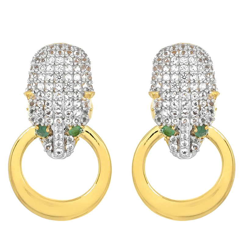 Pozlacené Stříbrné Náušnice s Brazilským Smaragdem a Bílým Topazem