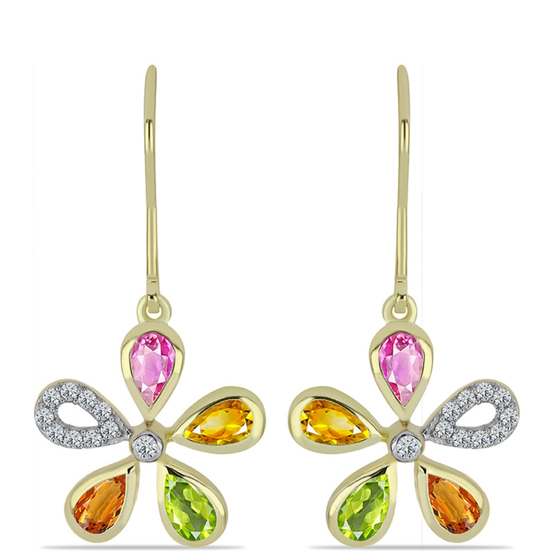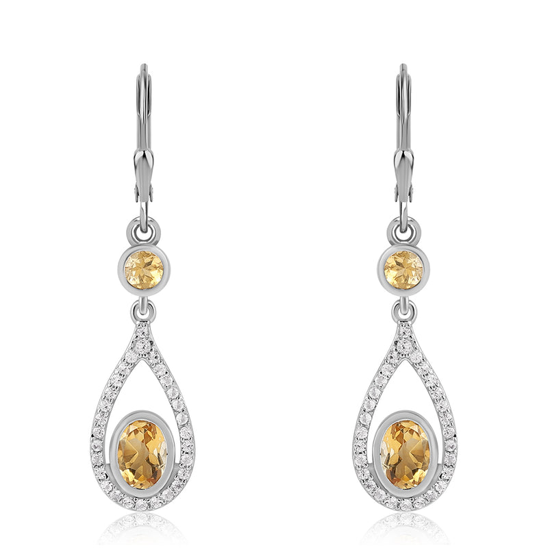 Stříbrné Náušnice s Citrínem a Bílým Topazem