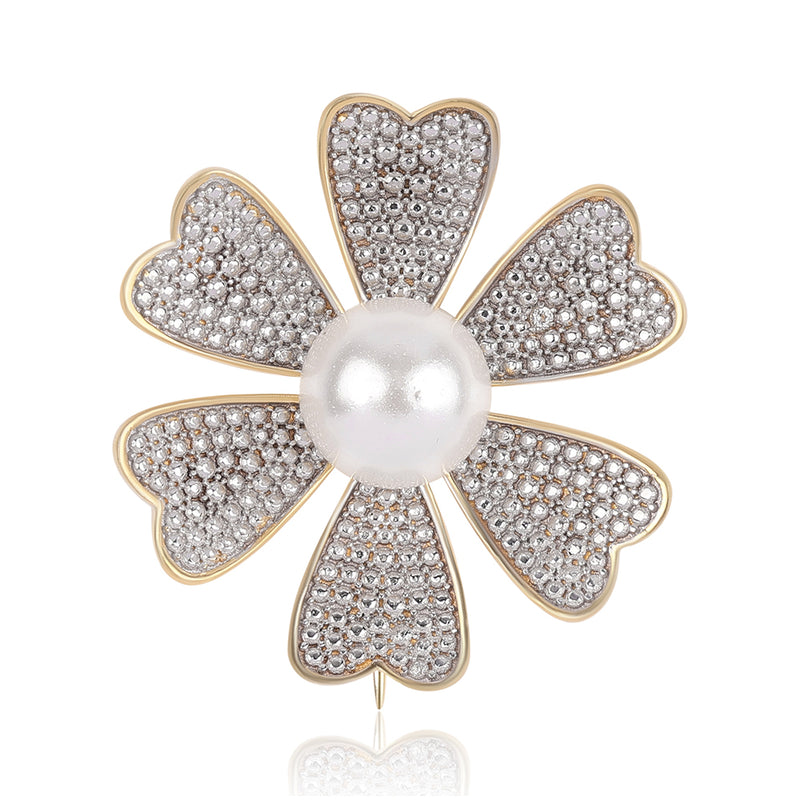 Pozlacený Stříbrný Brož s Bílou Sladkovodní Perlou