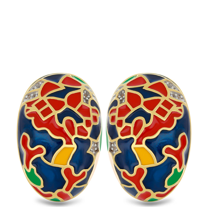 Pozlacené Stříbrné Náušnice se Smaltem a Bílým Topazem