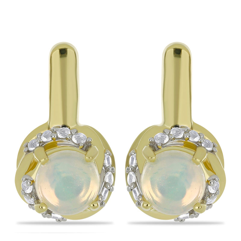 Pozlacené Stříbrné Náušnice s Etiopským Opálem z Lega Dembi a Bílým Topazem