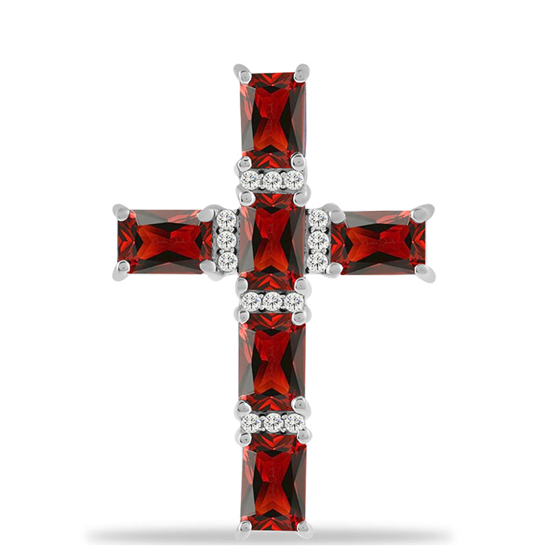 Kříž Stříbrný Přívěsek s Bartonským Granátem a Bílým Topazem