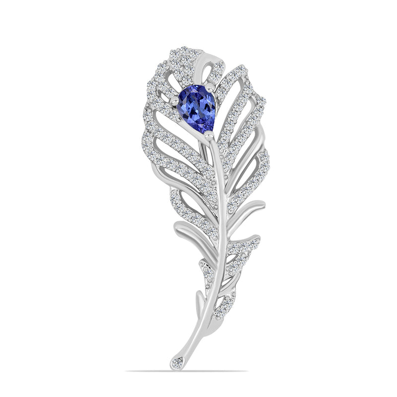 Stříbrný Brož s Tanzanitem a Bílým Topazem