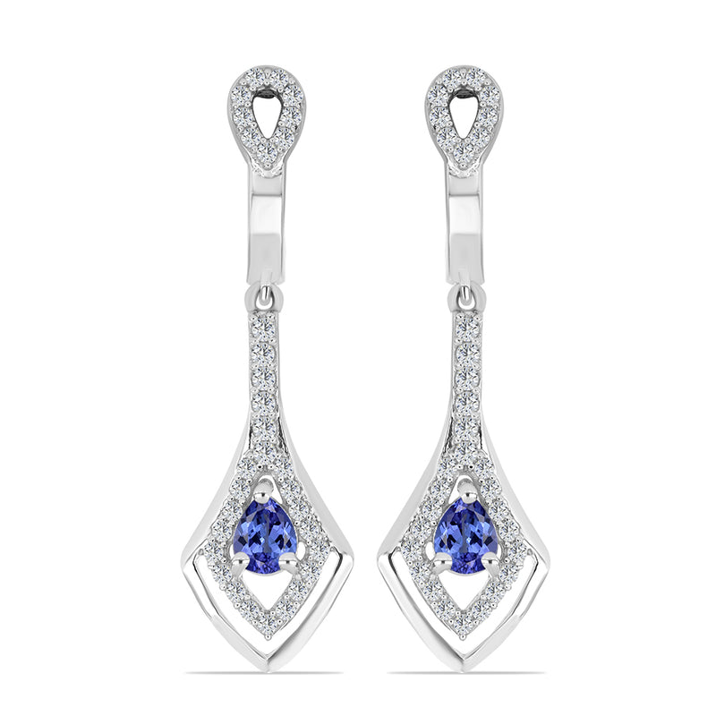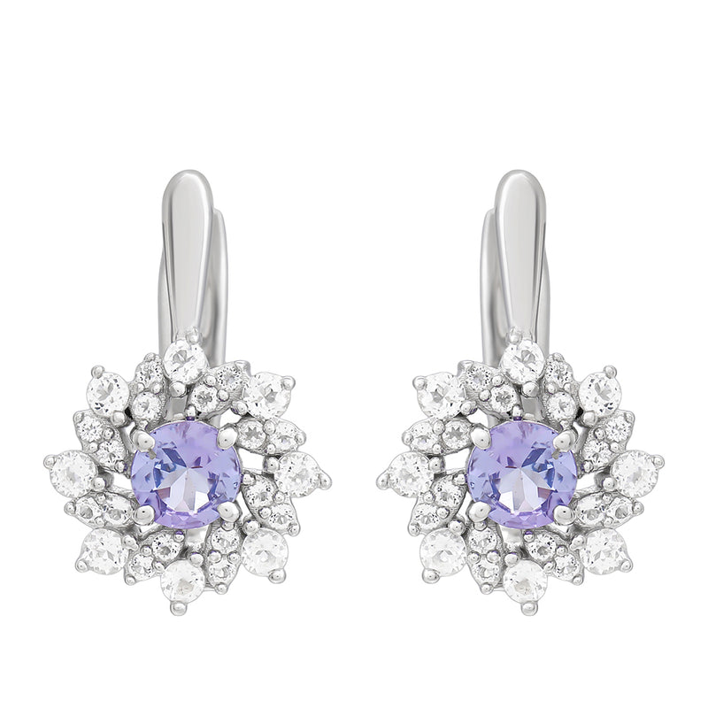 Stříbrné Náušnice s AAA Tanzanitem a Bílým Topazem