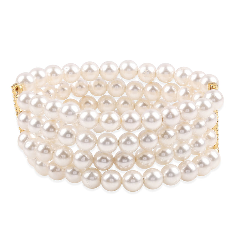 Pozlacený Stříbrný Náramek s Bílou Sladkovodní Perlou