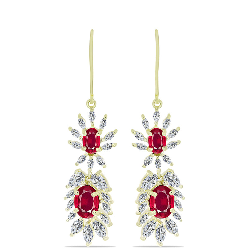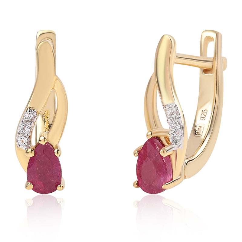 Pozlacené Stříbrné Náušnice s Madagaskarským Rubínem a Bílým Zirkonem