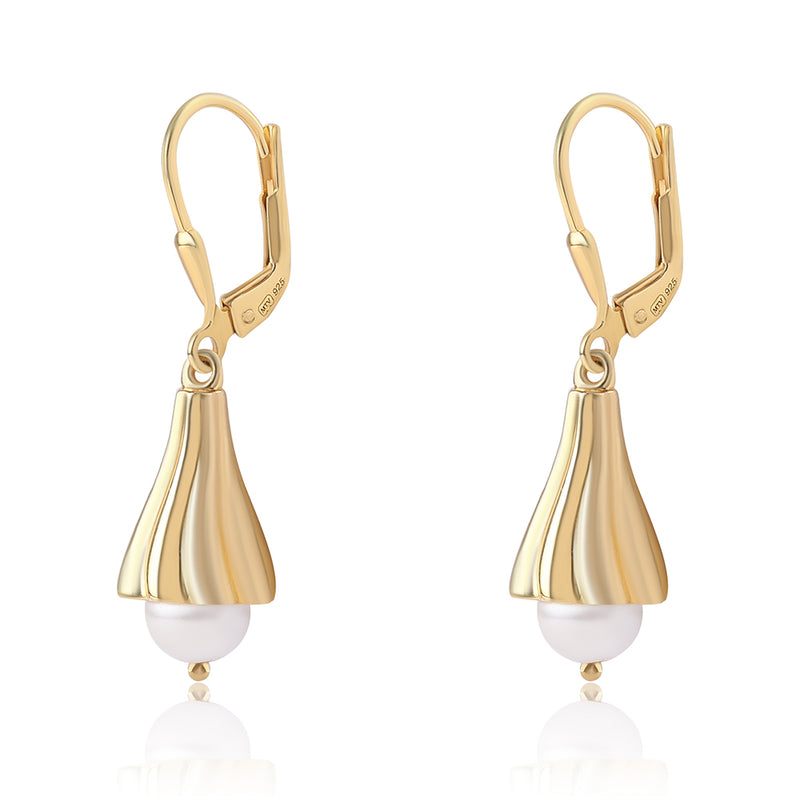 Pozlacené Stříbrné Náušnice s Bílou Sladkovodní Perlou