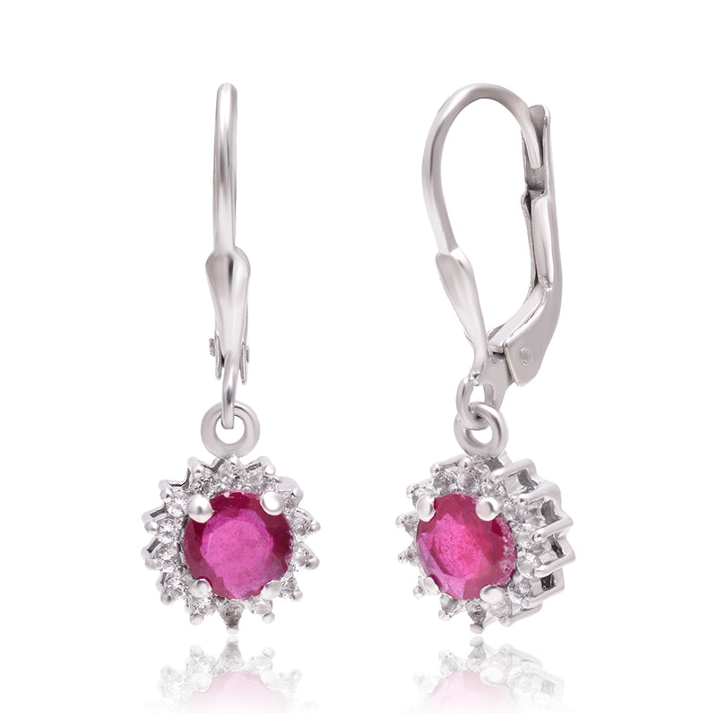 Stříbrné Náušnice s Madagaskarským Rubínem a Bílým Topazem