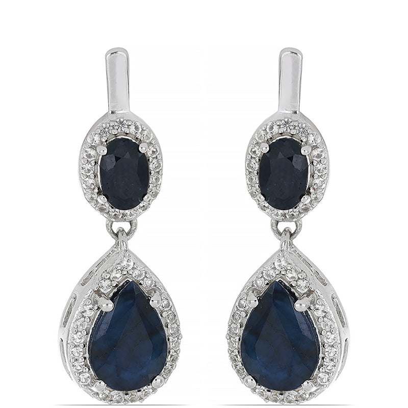 Stříbrné Náušnice s Roseberským Modrým Safírem a Bílým Topazem