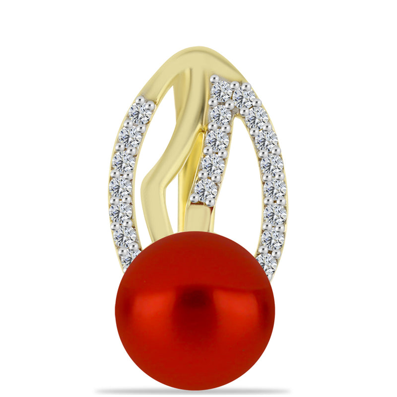Pozlacené Stříbrné Náušnice s Červená sladkovodní Perlou a Bílým Topazem