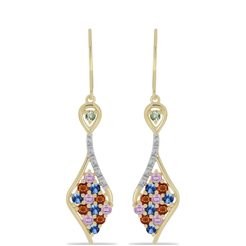 Pozlacené Stříbrné Náušnice s Roseberským Duhovým Safírem a Bílým Topazem