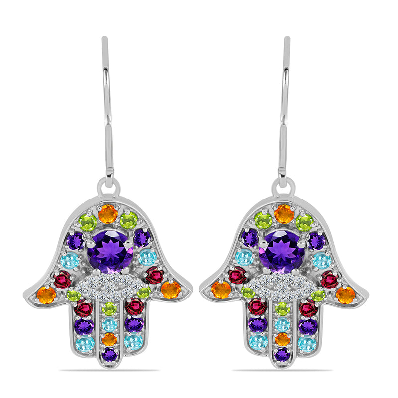 Stříbrné Náušnice s Tanzanitem a Bílým Topazem