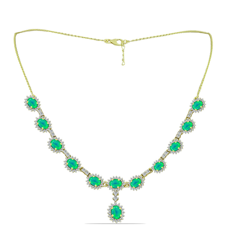 Pozlacený Stříbrný Náhrdelník se Zeleným Etiopským Opálem z Lega Dembi a Bílým Topazem